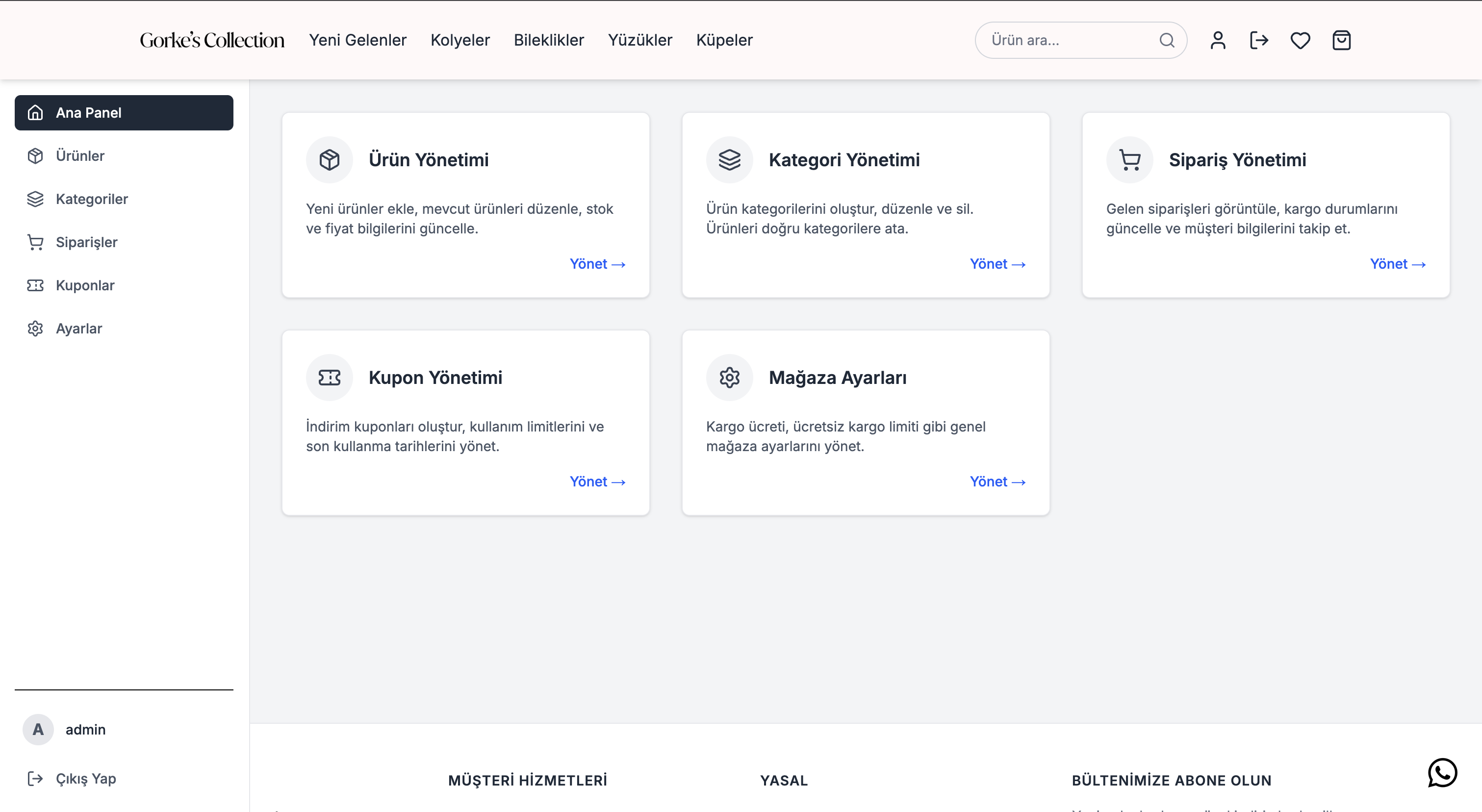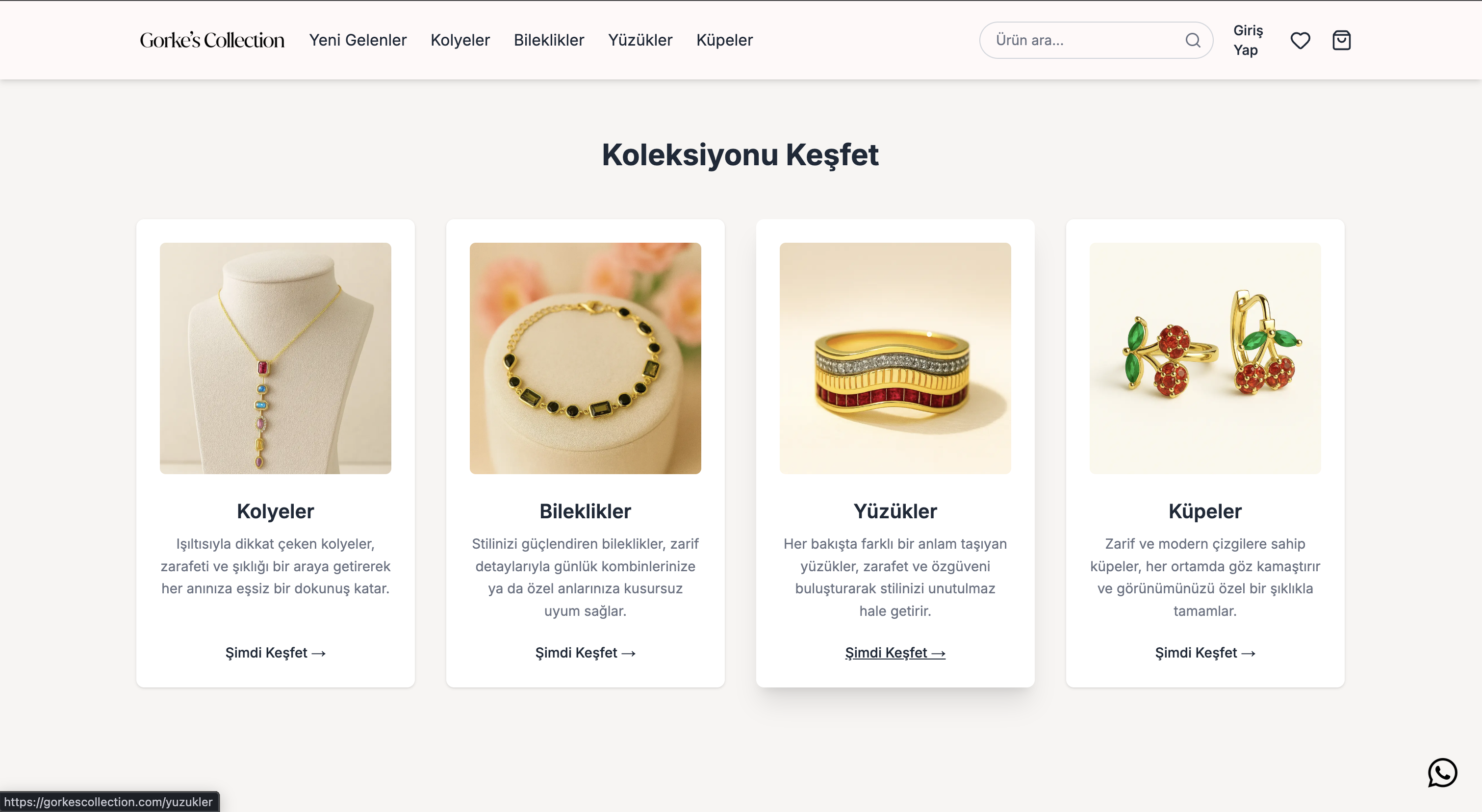 Gorke’s Collection, modern ve minimal kadın takılarını online olarak sunan, kullanıcı deneyimi ve dönüşüm odaklı tasarlanmış bir e-ticaret platformudur. Marka kimliği, performans ve satış süreçleri uçtan uca ele alınmıştır.